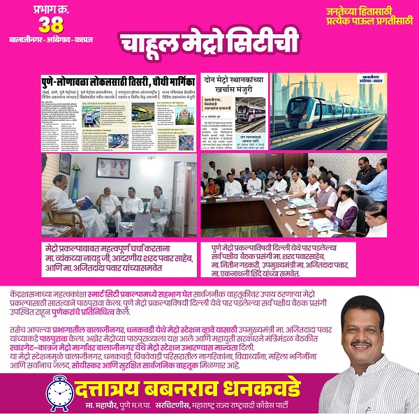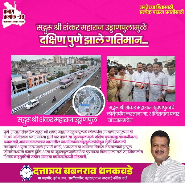 शहर असो प्रभाग, तुम्ही जी जी जबाबदारी सोपवली ती प्रामाणिकपणे पार पाडली. आपल्या सहकार्यामुळेच हे सर्व शक्य झाले. प्रत्येक समस्येचे निराकरण, प्रत्येक नागरिकाला सुविधा देण्यासाठी मी सदैव तत्पर आहे. आपण दिलेली साथ आणि विश्वास पुढेही कायम राहील, याची मला खात्री आहे. नव्याने तयार झालेल्या प्रभाग क्रमांक ३८ “बालाजीनगर, आंबेगाव – कात्रजच्या ” सर्वसमावेशक, शाश्वत आणि लोकाभिमुख विकासासाठी मी कटिबद्ध आहे.